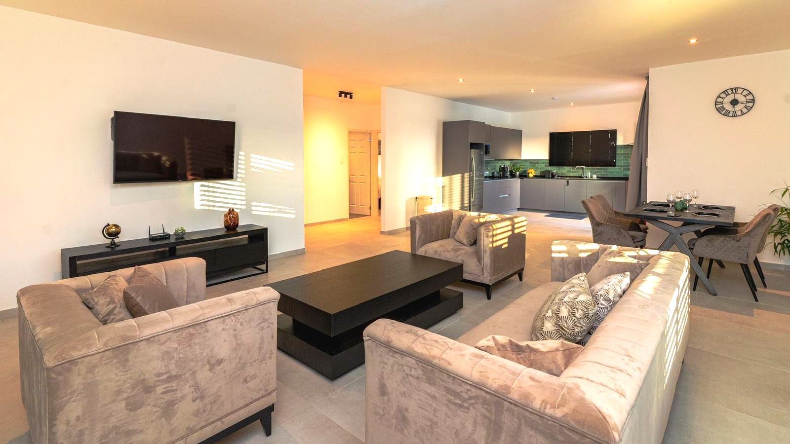 Elk appartement heeft een ruime woonkamer met een smart tv. Elk appartement heeft zijn eigen wifi. Het appartement is fully airconditioned en heeft zijn eigen balkon en een badkamer met toilet. Er wordt 3 keer in de week housekeeping gedaan.